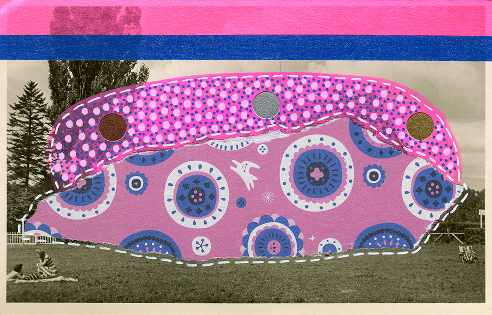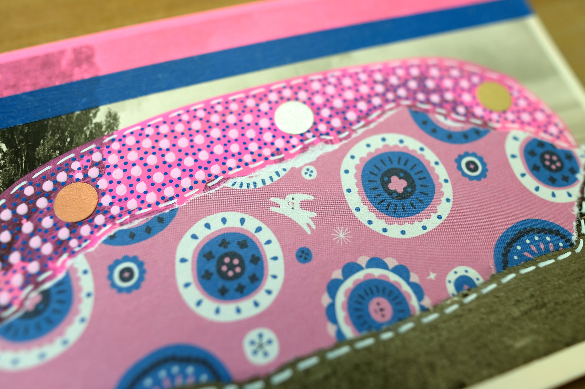 - Medium: Pens, stickers, paper and washi tape on vintage postcard.