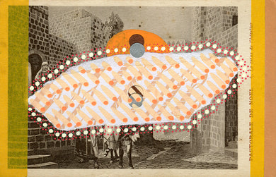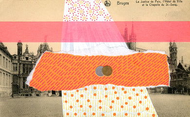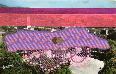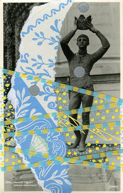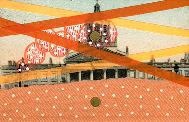 Original Mixed Media Collage On Vintage Monument Postcard