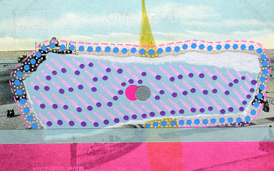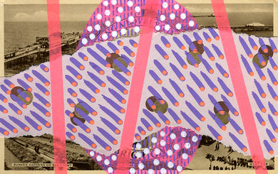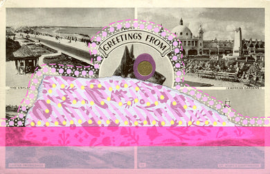 Mixed Media Collage On Retro Postcard Of Brighton