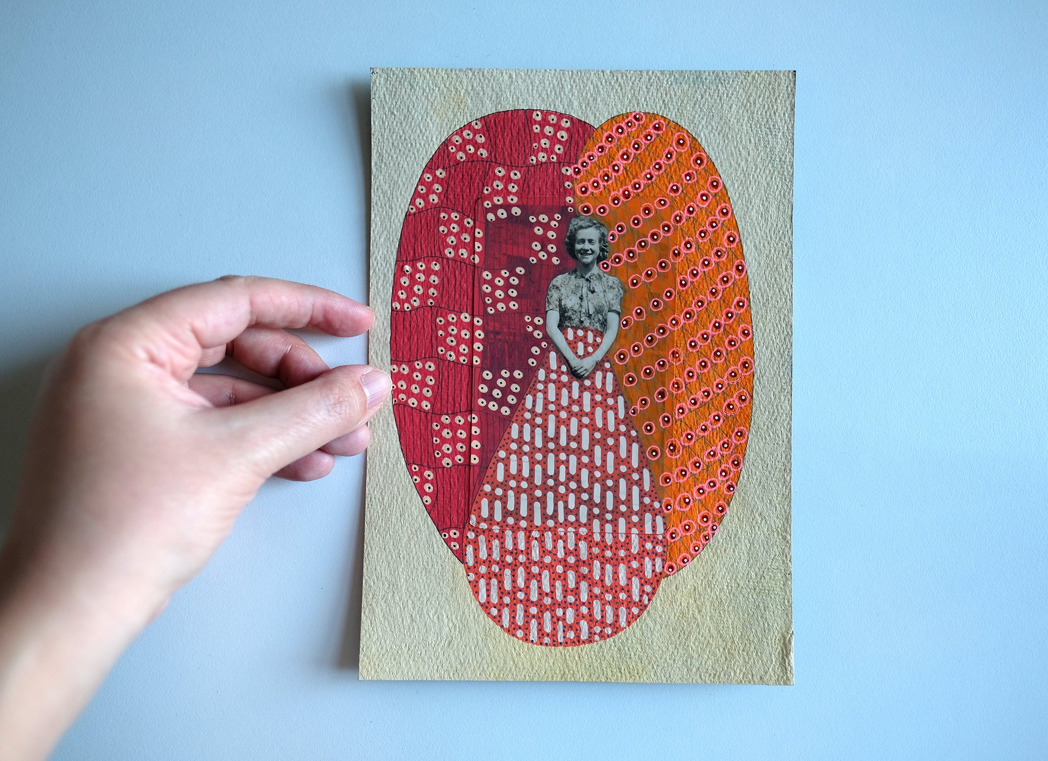 - Medium: gouache paint, vintage photo and pens on handmade cotton rag paper.